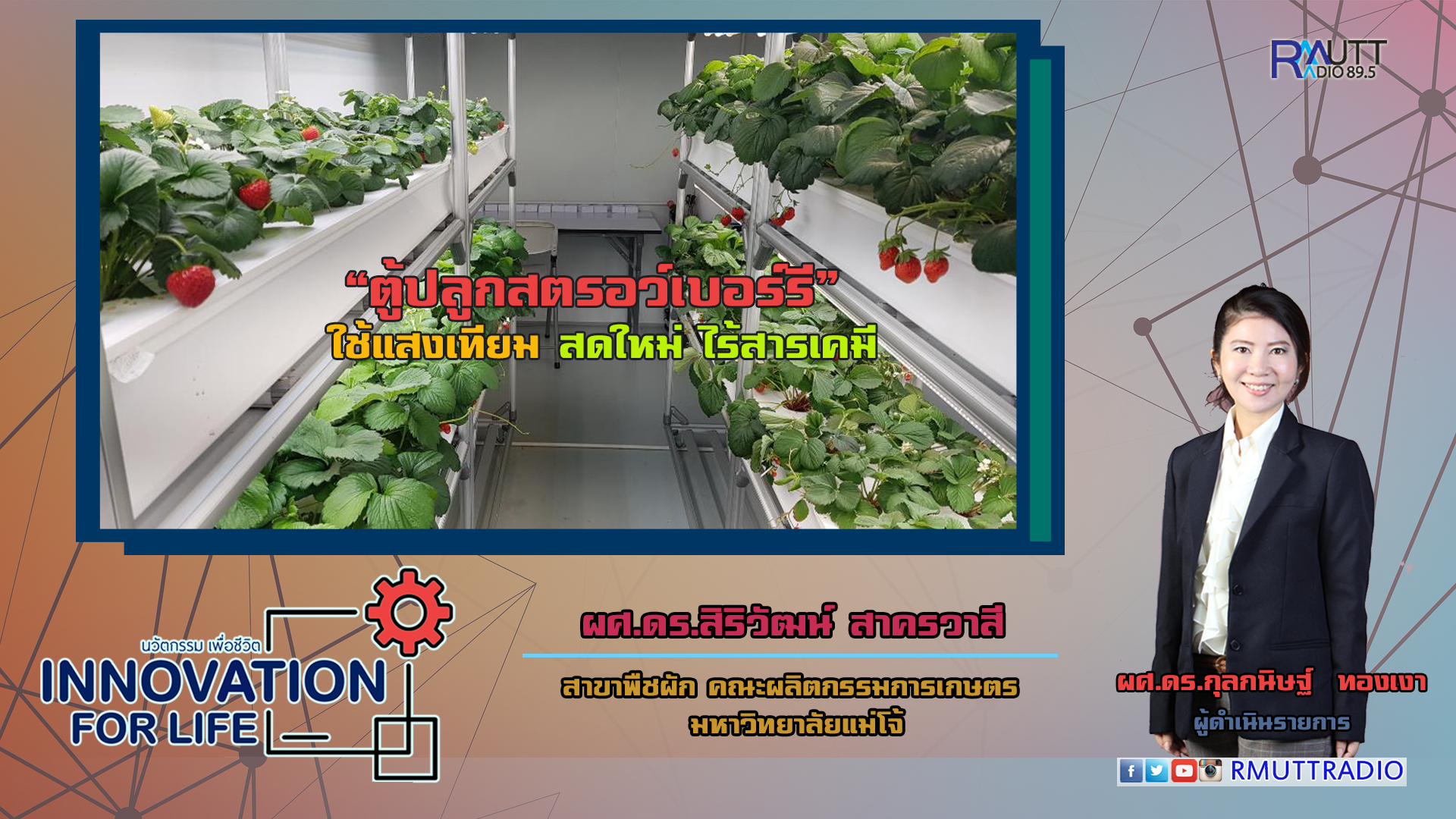 https://www.facebook.com/173993725962646/videos/652847465549418/ ปัจจุบันการปลูกพืชในระบบปิด หรือโรงงานผลิตพืช เป็นเทคโนโลยีที่กำลังแพร่หลายในประเทศไทย โดยเป็นระบบการปลูกพืชที่มีการควบคุมสภาพแวดล้อมเกือบทั้งหมดให้เหมาะสมต่อการเจริญเติบโตและให้ผลผลิตของพืชตลอดเวลา จึงมีแนวคิดที่จะทดลองปลูกสตรอว์เบอร์รี “สตรอว์เบอร์รีจัดเป็นพืชที่มีความท้าทายสำหรับการปลูกในระบบปิด เนื่องจากมีขั้นตอนการจัดการและดูแลรักษาที่ค่อนข้างซับซ้อน ...