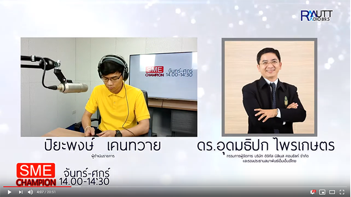 ติดตามข่าวสารการส่งเสริม SME กับ ดร.อุดมธิปก ไพรเกษตร กรรมการผู้จัดการ บริษัท ดิจิทัลบิสิเนส คอนซัลท์ จำกัด และปิยะพงษ์ เคนทวาย . [ 5 สิงหาคม 2562] #SME_Champion, #วิทยุราชมงคลธัญบุรี, #SME, #เอสเอ็มอี, ...