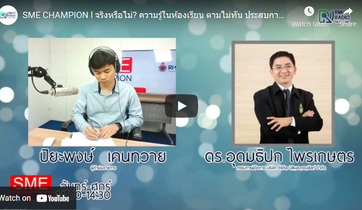 SME CHAMPION l จริงหรือไม่? ความรู้ในห้องเรียน ตามไม่ทัน ประสบการณ์การทำธุรกิจจริง ติดตามข่าวสารการส่งเสริม SME กับ ดร.อุดมธิปก ไพรเกษตร กรรมการผู้จัดการ บริษัท ดิจิทัลบิสิเนส คอนซัลท์ จำกัด และปิยะพงษ์ เคนทวาย [9 เมษายน 2564] #SME_Champion, #วิทยุราชมงคลธัญบุรี, #SME, #เอสเอ็มอี, ...