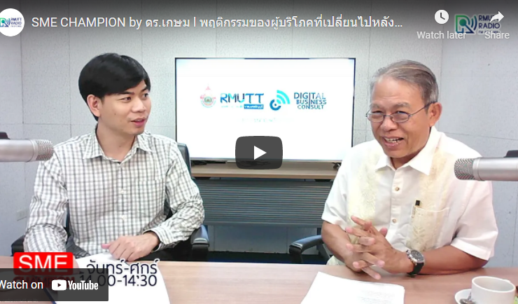 SME CHAMPION by ดร.เกษม l พฤติกรรมของผู้บริโภคที่เปลี่ยนไปหลังการระบาด COVID-19 ตอน2 ในช่วง SME TALK โดย ดร.เกษม พิพัฒน์เสรีธรรม กรรมการผู้จัดการบริษัท 40 เค แอนด์ พี จำกัด และที่ปรึกษามหาวิทยาลัยเทคโนโลยีราชมงคลธัญบุรี สนใจอ่านบทความทั้งหมดของ ดร.เกษม พิพัฒน์เสรีธรรม จากหนังสือ “ตังค์หาง่าย” ติดต่อได้ทกับทีมงานรายการ SME CHAMPION [1 เมษายน 2564] ดำเนินรายการโดย ปิยะพงษ์ เคนทวาย ...