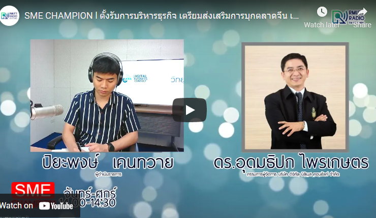 SME CHAMPION l ตั้งรับการบริหารธุรกิจ เตรียมส่งเสริมการบุกตลาดจีน เวียดนาม ติดตามข่าวสารการส่งเสริม SME กับ ดร.อุดมธิปก ไพรเกษตร กรรมการผู้จัดการ บริษัท ดิจิทัลบิสิเนส คอนซัลท์ จำกัด และปิยะพงษ์ เคนทวาย [26 มีนาคม 2564] #SME_Champion, #วิทยุราชมงคลธัญบุรี, #SME, #เอสเอ็มอี, ...