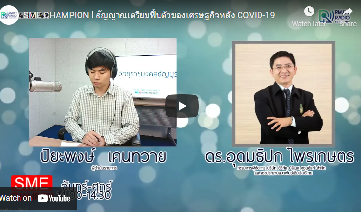 SME CHAMPION l สัญญาณเตรียมฟื้นตัวของเศรษฐกิจหลัง COVID-19 ติดตามข่าวสารการส่งเสริม SME กับ ดร.อุดมธิปก ไพรเกษตร กรรมการผู้จัดการ บริษัท ดิจิทัลบิสิเนส คอนซัลท์ จำกัด และปิยะพงษ์ เคนทวาย [19 มีนาคม 2564] #SME_Champion, #วิทยุราชมงคลธัญบุรี, #SME, #เอสเอ็มอี, ...