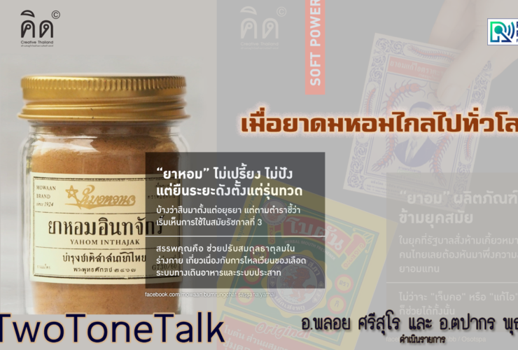 RMUTT Radio · 3 TwoToneTalk 66 – 06 – 24f TwoToneTalk l เมื่อยาดมหอมไกลไปทั่วโลก . นอกจากยาสามัญประจำบ้านแล้ว สิ่งที่ทุกบ้านต้องมีติดตู้ยาไว้ คือ ยาหอม ยาดม ยาอม และยาหม่อง ที่เรียกได้ว่าสะท้อนภูมิปัญญาและวิถีชีวิตของคนไทยในการดูแลสุขภาพเบื้องต้นในฉบับบ้าน ๆ จนกระทั่งเกิดกระแสนักร้อง นักแสดง หรือเน็ตไอดอลชื่อดังกับภาพการถือหรือใช้ยาดมเผยแพร่ออกไป จนกลายเป็นกระแสไวรัลทำให้สินค้าขาดตลาด นักท่องเที่ยวชาวต่างชาติให้ความสนใจและซื้อเหมากล่องยกแผงกลับไปเป็นของฝากจากประเทศไทย เรียกได้ว่าอาจเป็นอีกหนึ่ง soft power ที่น่าจับตามองในอนาคต . ดำเนินรายการโดย อ.พลอย ศรีสุโร และ อ.ตปากร พุธเกส . ...