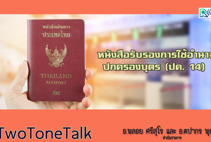 RMUTT Radio · TwoToneTalk l หนังสือรับรองการใช้อำนาจปกครองบุตร (ปค. 14) TwoToneTalk l หนังสือรับรองการใช้อำนาจปกครองบุตร (ปค. 14) สำหรับคุณพ่อคุณแม่เลี้ยงเดี่ยวที่ไม่ได้จดทะเบียนสมรส หรือบิดาไม่เคยจดทะเบียนรับรองบุตร หากต้องการทำ passport ให้ลูกที่ยังไม่บรรลุนิติภาวะ อย่าลืมแวะไปอำเภอเพื่อขอหนังสือรับรองการใช้อำนาจปกครองบุตร (ปค. 14) เพื่อใช้เป็นหลักฐานในการยื่นขอทำ passport ทั้งนี้ ต้องมีพยานที่มีอายุ 20 ปีขึ้นไป จำนวน 2 คน และมีค่าธรรมเนียมสำหรับการขอเอกสารอีก 50 บาท . ดำเนินรายการโดย อ.พลอย ศรีสุโร และ อ.ตปากร พุธเกส ...