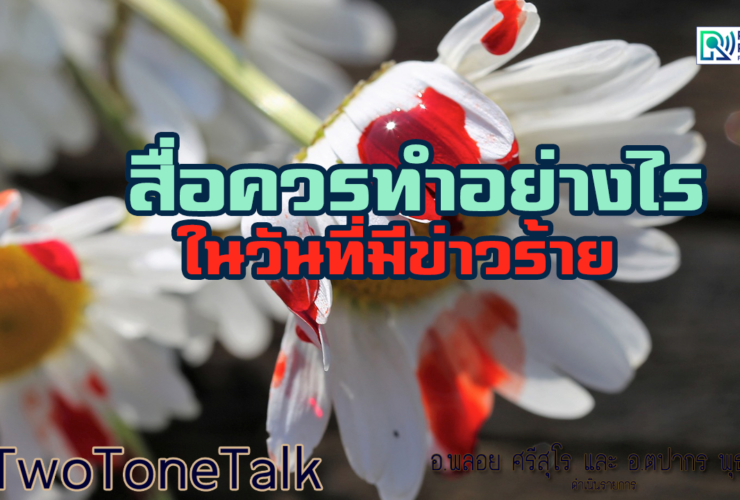 RMUTT Radio · TwoToneTalk l สื่อควรทำอย่างไรในวันที่มีข่าวร้าย TwoToneTalk l สื่อควรทำอย่างไรในวันที่มีข่าวร้าย . ในช่วง 2-3 ปีก่อน ประเทศไทยเคยเกิดเหตุการณ์ความรุนแรงที่จังหวัดนครราชสีมา ซึ่งในครั้งนั้นสื่อมวลชนถูกวิพากษ์วิจารณ์อย่างหนักในแง่การรายงานข่าว จนเกิดวงเสวนาต่างๆ รวมไปถึงการสร้างบรรทัดฐาน สร้างแนวทางในการรายงานข่าวร้ายของสื่อออกมามากมาย แต่เมื่อเวลาผ่านไป สื่อก็เหมือนจะแกล้งลืมสิ่งที่เคยเรียนรู้ไปหมดแล้ว . รายการในตอนนี้จึงอยากชวนคุณผู้ฟังมาพูดคุยเกี่ยวกับการปฏิบัติตัวของผู้รับสารและการเป็นผู้ส่งสารที่เหมาะสมในช่วงเวลาที่มีเหตุการณ์ร้ายๆ เพื่อช่วยกันเป็นกระจกสะท้อนให้สื่อมวลชนทำหน้าที่ในกรอบในวิธีที่เหมาะสม . ดำเนินรายการโดย อ.พลอย ศรีสุโร และ อ.ตปากร พุธเกส . ออกอากาศ 15 ตุลาคม 2565 ติดตามรับฟังได้ทาง #วิทยุราชมงคลธัญบุรี #RmuttRadio #TwoToneTalk ...