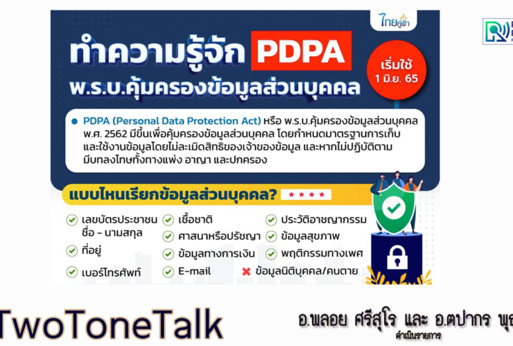 RMUTT Radio · TwoToneTalk l PDPA TwoToneTalk l PDPA . 1 มิ.ย. นอกจากจะเป็นวันแรกของครึ่งปีหลังแล้ว ยังเป็นวันแรกที่ พรบ. คุ้มครองข้อมูลส่วนบุคคล ถูกนำมาใช้อย่างเป็นทางการด้วย ด้วยความเป็น พรบ.ฉบับใหม่ ที่เพิ่งบังคับใช้จึงอาจจะยังเป็นเรื่องที่เรายังไม่คุ้นชินกันนัก รายการในสัปดาห์นี้จึงอยากชวนคุณผู้ฟังมาพูดคุยถึงเรื่องของ พรบ.PDPA เพื่อทำความรู้จัก เข้าใจ เพื่อปรับใช้ให้เหมาะสมกับการใช้ชีวิตประจำวันของเราได้อย่างเหมาะสมต่อไป . ดำเนินรายการโดย อ.พลอย ศรีสุโร และ อ.ตปากร พุธเกส . ออกอากาศ [4 มิถุนายน 2565 ] ติดตามรับฟังได้ทาง #วิทยุราชมงคลธัญบุรี ...