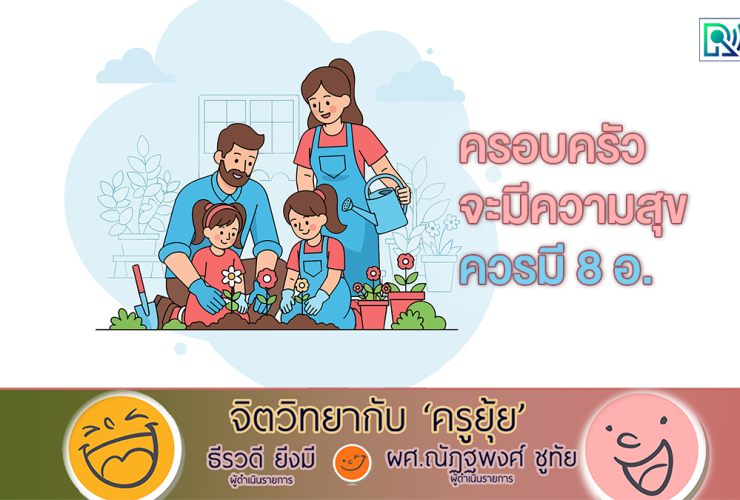 จิตวิทยากับครูยุ้ย l ครอบครัวจะมีความสุข ควรมี 8 อ. มีดังนี้ 1. อภัย 2. อดทน – อดกลั้น 3. อบอุ่น อ้อมกอด 4. เอื้อเฟื้อ เอื้ออาทร 5. อารมณ์ขัน 6. อุปโภค บริโภค 7. อาชีพ สุจริต 8. ออกกำลังกาย ออกอากาศ 1 ตุลาคม 2568 ติดตามรับฟังได้ทาง #วิทยุราชมงคลธัญบุรี #RmuttRadio #จิตวิทยากับครูยุ้ย #FM895 #ชีวิตดีขึ้น #ความสุข ...