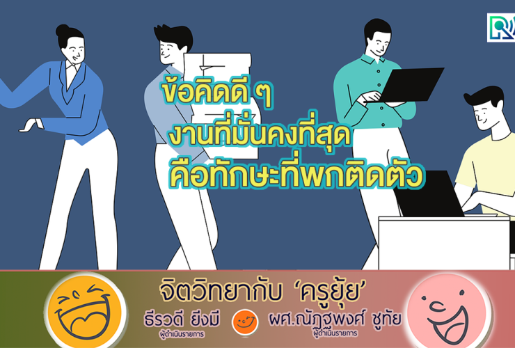 จิตวิทยากับครูยุ้ย l ข้อคิดดี ๆ งานที่มั่นคงที่สุด คือทักษะที่พกติดตัว มีดังนี้ 1. ตำแหน่งงานอาจจะเปลี่ยน แต่ทักษะดี ๆ ไม่มีใครแย่งไปจากเราได้ 2. อย่าผูกชีวิตไว้กับแค่บริษัทเดียว 3. ทักษะไม่จำเป็นต้องอลังการ แต่ต้องใช้ได้จริง เช่น พูดดี ฟังเป็น แก้ปัญหาเก่ง ฯลฯ 4. งานที่ดีเริ่มต้นจากคนที่ พร้อม 5. โลกเปลี่ยนเร็ว คนต้องเรียนรู้ไม่หยุด 6. อย่ามองข้ามทักษะเล็ก ๆ เช่น การตรงต่อเวลา มีความรับผิดชอบ 7. ยิ่งมีทักษะหลายด้าน ไม่ต้องกลัวกับการเริ่มต้นใหม่ 8. ทักษะ คือ ...