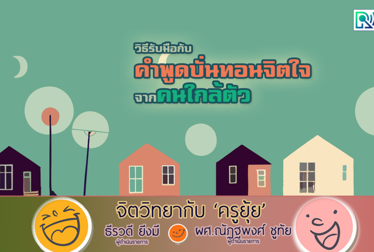 จิตวิทยากับครูยุ้ย l วิธีรับมือกับคำพูดบั่นทอนจิตใจจากคนใกล้ตัว . เราจะมีวิธีรับมือกับคำพูดบั่นทอนจิตใจจากคนใกล้ตัวได้ ดังนี้ 1. พูดตรง ๆ ว่าเรารู้สึกไม่ดีหรือแย่กับคำพูดนั้น ๆ 2. พยายามคิดบวกอาจจะหาบทความที่อ่านแล้วรู้สึกดี และ ฝึกคิดบวก 3. พยายามมองข้ามความรู้สึกแย่ ๆ และมองข้ามเรื่องเล็ก ๆ น้อย ๆ ไปบ้าง 4. ต้องพยายามใจกว้าง คิดกว้าง ๆ และคิดถึงข้อดีของคน ๆ นั้น . ออกอากาศ [ 8 ธันวาคม 2565 ] ติดตามรับฟังได้ทาง #วิทยุราชมงคลธัญบุรี #RmuttRadio ...