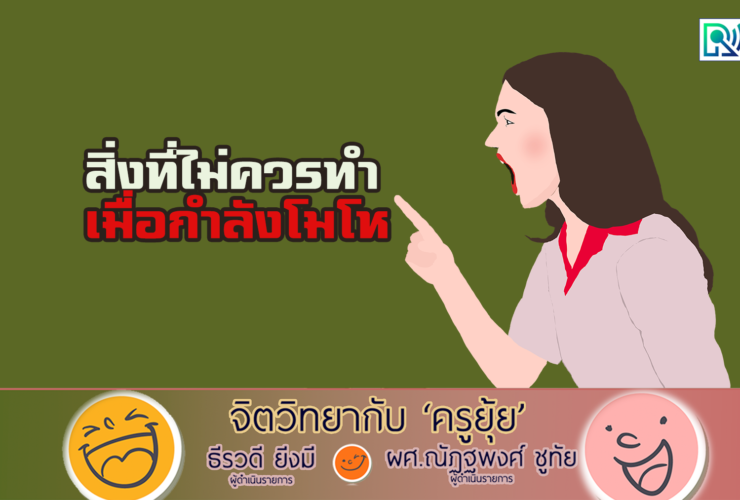 จิตวิทยากับครูยุ้ย l สิ่งที่ไม่ควรทำ เมื่อกำลังโมโห . 1. อย่าเพิ่งตัดสินใจอะไรในขณะที่กำลังโมโห 2.อย่าขับรถ เพราะเอาอาจจะขาดสติ แล้วทำให้เกิดอุบัติเหตุ 3. อย่าเอาเรื่องที่โมโหไปพูดหรือเล่าต่อ เพราะอาจจะทำให้เรื่องใหญ่โต 4. อย่าสั่งอาหาร เพราะเราอาจจะสั่งมากกว่าปกติ 5. อย่าโพสต์ระบายลงโซเซียล . ออกอากาศ [ 30 มิถุนายน 2565 ] ติดตามรับฟังได้ทาง #วิทยุราชมงคลธัญบุรี #RmuttRadio #จิตวิทยากับครูยุ้ย #FM895 ...