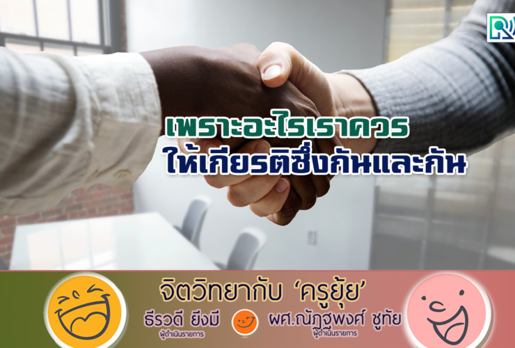 จิตวิทยากับครูยุ้ย l เพราะอะไรเราควรให้เกียรติซึ่งกันและกัน . การให้เกียรติกันคือ การยอมรับความสามารถของแต่ละคน ข้อดีของการให้เกียรติคนอื่นคือ เค้าจะให้เกียรติเราเช่นกัน พฤติกรรมง่ายๆที่เราให้เกียรติคนอื่นคือ การมีมารยาททางสังคม เราควรให้เกียรติผู้อื่นง่ายๆ ได้ดังนี้ 1. อย่าดูถูกคนอื่น คุยโม้ โอ้อวดตนเอง 2. คุยเสียงดัง หรือเปิดเพลงเสียงดัง 3. ซุบซิบนินทาผู้อื่น . ออกอากาศ [ 4 สิงหาคม 2565 ] ติดตามรับฟังได้ทาง #วิทยุราชมงคลธัญบุรี #RmuttRadio #จิตวิทยากับครูยุ้ย #FM895 ...