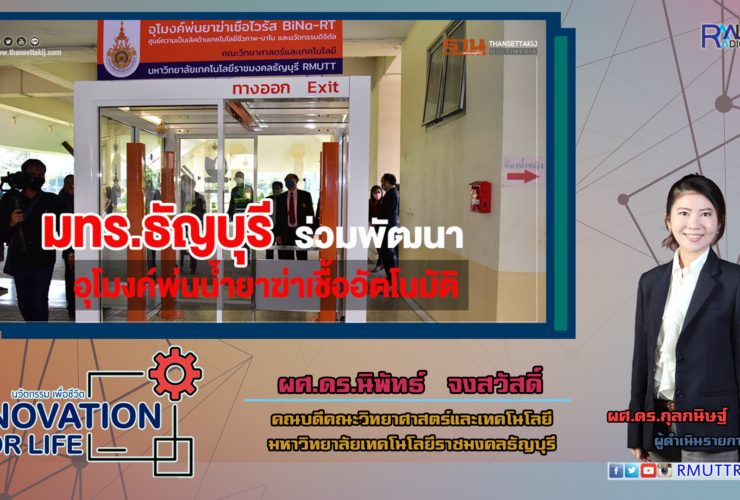https://www.facebook.com/173993725962646/videos/577186349879303/ #Innovationforlife l ‘มทร.ธัญบุรี’ ทำอุโมงค์ พ่นน้ำยาฆ่าเชื้ออัตโนมัติ . ผศ.ดร.นิพัทธ์ จงสวัสดิ์ คณบดีคณะวิทยาศาสตร์และเทคโนโลยี มทร.ธัญบุรี . ทีมวิจัยศูนย์ความเป็นเลิศด้านเทคโนโลยีชีวภาพ-นาโน และนวัตกรรมดิจิทัล (COE) คณะวิทยาศาสตร์และเทคโนโลยี มทร.ธัญบุรี ร่วมกับบริษัทแก้วกานดา จำกัด ทำการพัฒนาอุโมงค์พ่นน้ำยาฆ่าเชื้ออัตโนมัติ ตัวอุโมงค์ทำจากวัสดุที่มีคุณภาพแข็งแรงทนทาน สามารถพ่นน้ำยาฆ่าเชื้อเป็นละอองฝอย ฆ่าเชื้อโรค เชื้อแบคทีเรีย และเชื้อไวรัส ได้ครอบคลุมตั้งแต่หัวจรดเท้าโดยใช้เวลาเพียง 6 วินาทีต่อคน . ออกอากาศ[24 พฤษภาคม 2563 ] ติดตามรับฟังได้ทาง#วิทยุราชมงคล #วิจัยนวัตกรรม #ราชมงคล #ThamRobot #FM895 ...