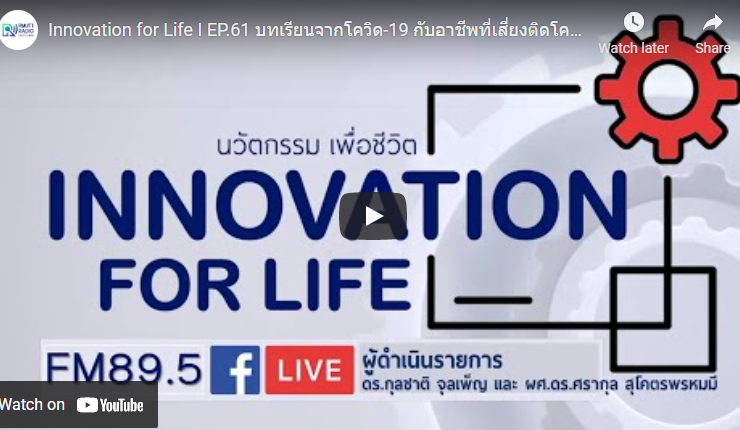 Innovation for Life I EP.61 บทเรียนจากโควิด-19 กับอาชีพที่เสี่ยงติดโควิดสูง ในทุกวิกฤตย่อมมีโอกาส แม้มีความสูญเสีย แต่บางครั้งก็ทำให้เกิดการเปลี่ยนแปลงไปสู่สิ่งที่ดีกว่าได้ / กลุ่มอาชีพที่มีความเสี่ยงสูง ติดโควิด-19 เหตุต้องสัมผัสบุคคลจำนวนมาก ดำเนินรายการโดย ดร.กุลชาติ จุลเพ็ญ และ ผศ.ดร.ศรากุล สุโคตรพรหมมี ทางวิทยุราขชมงคลธัญบุรี FM 89.5MHZ คลื่นเทคโนโลยีเพื่อคุณภาพชีวิต ...