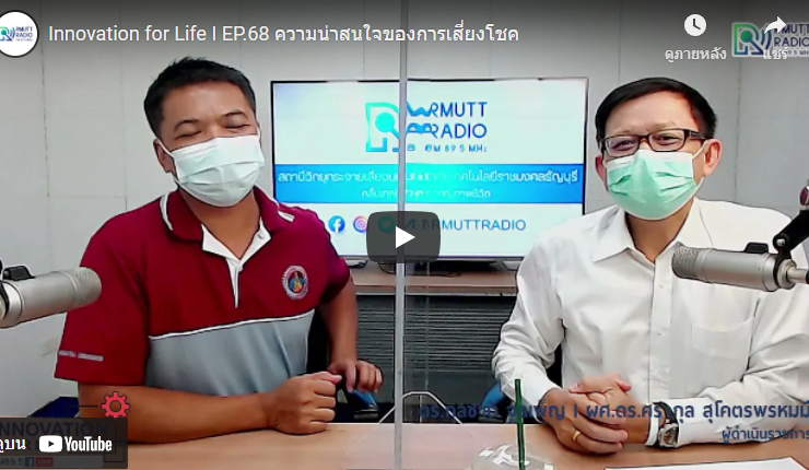 Innovation for Life I EP.68 ความน่าสนใจของการเสี่ยงโชค พฤติกรรมการเสี่ยงดวงของคนไทยจากการศึกษาพบว่าเกิดจากค่านิยมที่ถูกฝังมาจากโบราณจะแยกได้จากค่านิยมสังคมเมืองกับค่านิยมชนบท ชีวิตขึ้นอยู่กับธรรมชาติ มีความเชื่อเรื่องโชคลาง ชอบการเสี่ยงโชคโดยเฉพาะเรื่องของการนับถือผีหรือสิ่งเร้นลับ . ดำเนินรายการโดย ดร.กุลชาติ จุลเพ็ญ และ ผศ.ดร.ศรากุล สุโคตรพรหมมี ทางวิทยุราขชมงคลธัญบุรี FM 89.5MHZ คลื่นเทคโนโลยีเพื่อคุณภาพชีวิต ...
