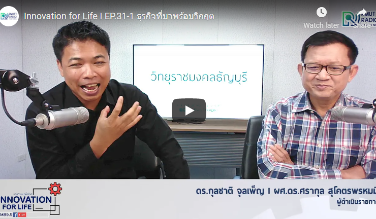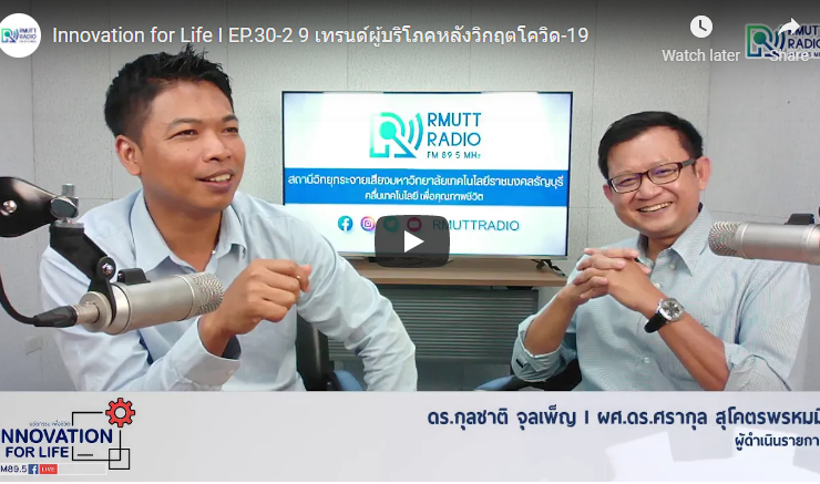 ช่วง 1 ช่วง 2 Innovation for Life I EP.31 ธุรกิจที่มาพร้อมวิกฤต ดำเนินรายการโดย ดร.กุลชาติ จุลเพ็ญ และ ผศ.ดร.ศรากุล สุโคตรพรหมมี ธุรกิจดาวรุ่งส่วนใหญ่ได้รับผลกระทบเชิงบวกจากการปรับพฤติกรรมของผู้บริโภคที่เกิดจากการระบาดของโควิด-19 เช่นเดียวกับธุรกิจดาวร่วงได้รับผลกระทบเชิงลบจากการเปลี่ยนพฤติกรรมของผู้บริโภคที่เกิดจากวิกฤตดังกล่าวเช่นกัน ทางวิทยุราขชมงคลธัญบุรี FM 89.5MHZ คลื่นเทคโนโลยีเพื่อคุณภาพชีวิต ...