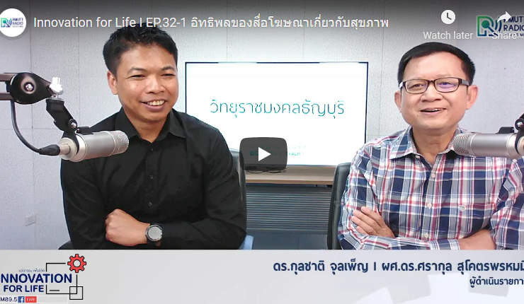 ช่วง 1 ช่วง 2 Innovation for Life I EP.32 อิทธิพลของสื่อโฆษณาเกี่ยวกับสุขภาพ ดำเนินรายการโดย ดร.กุลชาติ จุลเพ็ญ และ ผศ.ดร.ศรากุล สุโคตรพรหมมี ธุรกิจดาวรุ่งส่วนใหญ่ได้รับผลกระทบเชิงบวกจากการปรับพฤติกรรมของผู้บริโภคที่เกิดจากการระบาดของโควิด-19 เช่นเดียวกับธุรกิจดาวร่วงได้รับผลกระทบเชิงลบจากการเปลี่ยนพฤติกรรมของผู้บริโภคที่เกิดจากวิกฤตดังกล่าวเช่นกัน ทางวิทยุราขชมงคลธัญบุรี FM 89.5MHZ คลื่นเทคโนโลยีเพื่อคุณภาพชีวิต ...