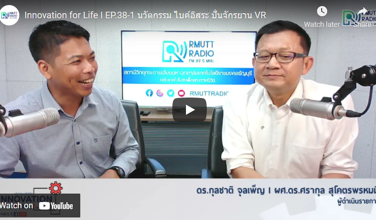 ช่วง 1 ช่วง 2 Innovation for Life I EP.38 นวัตกรรม ไบค์อิสระ ปั่นจักรยาน VR ดำเนินรายการโดย ดร.กุลชาติ จุลเพ็ญ และ ผศ.ดร.ศรากุล สุโคตรพรหมมี นักปั่นสามารถควบคุมทิศทางและความเร็วได้ด้วยตัวเอง ทั้งหมดนี้จะมอบความรู้สึกราวกับว่ากำลังปั่นจักรยานอยู่นอกบ้านจริง ๆ จักรยานคันโปรดที่บ้านพร้อมกับสวมใส่อุปกรณ์ VR เราก็พร้อมท่องโลกเสมือนจริงแล้วล่ะ นี่เป็นการผสานเทคโนโลยี VR เข้ากับกีฬาได้อย่างน่าตื่นเต้น ทางวิทยุราขชมงคลธัญบุรี FM 89.5MHZ คลื่นเทคโนโลยีเพื่อคุณภาพชีวิต ...