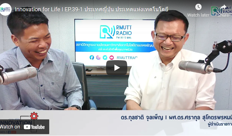 ช่วง 1 ช่วง 2 Innovation for Life I EP.39 ประเทศญี่ปุ่น ประเทคแห่งเทคโนโลยี ดำเนินรายการโดย ดร.กุลชาติ จุลเพ็ญ และ ผศ.ดร.ศรากุล สุโคตรพรหมมี ญี่ปุ่น มีชื่อทางการคือประเทศญี่ปุ่น เป็นประเทศหมู่เกาะจึงทำให้บางครั้งถูกเรียกว่าดินแดนแห่งอาทิตย์อุทัยโดยเฉพาะอย่างยิ่ง นโยบายเทคโนโลยีการสื่อสารของญี่ปุ่นมุ่งมั่นสู่การเป็นสังคมสารสนเทศจึงทำให้เทคโนโลยีการสื่อสารของญี่ปุ่นก้าวหน้าไม่หยุดยั้ง ทางวิทยุราขชมงคลธัญบุรี FM 89.5MHZ คลื่นเทคโนโลยีเพื่อคุณภาพชีวิต ...