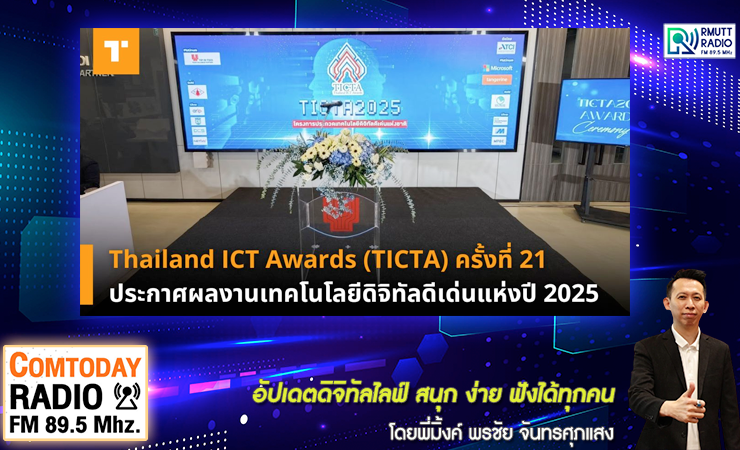 Comtoday l Thailand ICT Awards (TICTA) ครั้งที่ 21 ประกาศผลงานเทคโนโลยีดิจิทัลดีเด่นแห่งปี 2025 . ดำเนินรายการโดย พี่มิ้งค์ พรชัย จันทรศุภแสง . ออกอากาศ 3 ตุลาคม 2568 ติดตามรับฟังได้ทาง #วิทยุราชมงคลธัญบุรี #RmuttRadio #Comtoday #computer #เทคโนโลยี ...