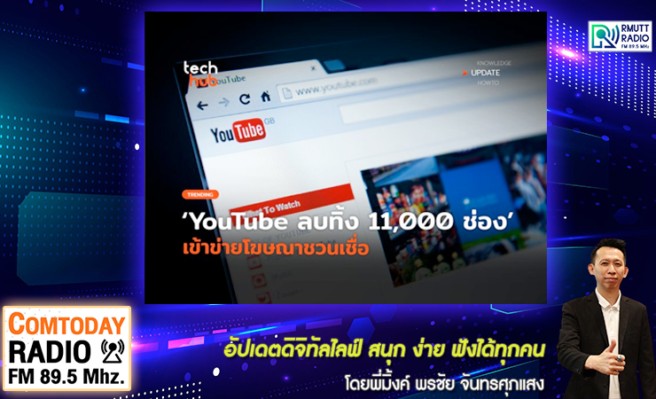 Comtoday l YouTube เอาจริง ลบทิ้ง 11,000 ช่อง เข้าข่ายโฆษณาชวนเชื่อ . ดำเนินรายการโดย พี่มิ้งค์ พรชัย จันทรศุภแสง . ออกอากาศ 1 สิงหาคม 2568 ติดตามรับฟังได้ทาง #วิทยุราชมงคลธัญบุรี #RmuttRadio #Comtoday #computer #เทคโนโลยี ...