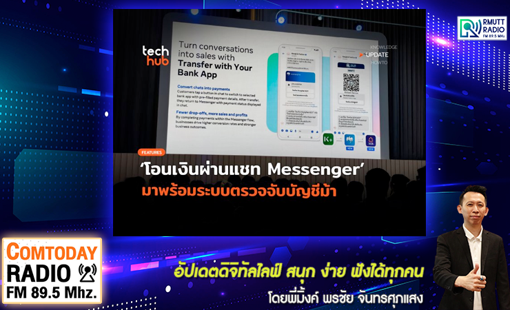 Comtoday l Facebook ปล่อยฟีเจอร์ใหม่ โอนเงินผ่านแชท Messenger มาพร้อมระบบตรวจจับบัญชีม้า . ดำเนินรายการโดย พี่มิ้งค์ พรชัย จันทรศุภแสง . ออกอากาศ 8 สิงหาคม 2568 ติดตามรับฟังได้ทาง #วิทยุราชมงคลธัญบุรี #RmuttRadio #Comtoday #computer #เทคโนโลยี ...