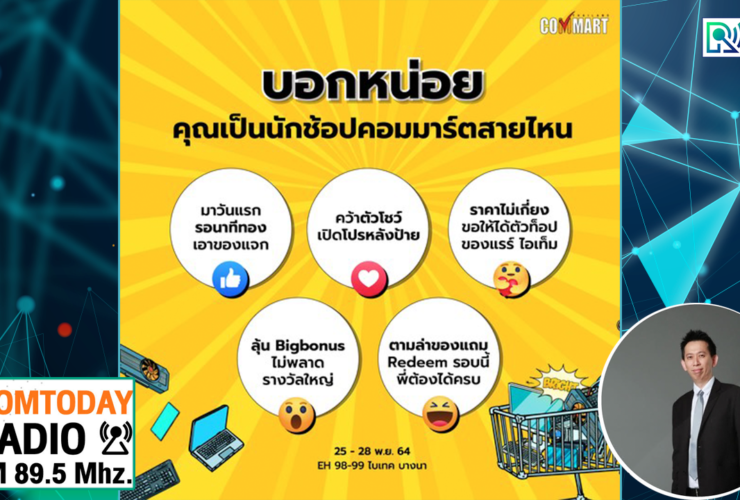 Comtoday l COMMART BRIGHT สำเร็จตามเป้า . ดำเนินรายการโดย พี่มิ้งค์ พรชัย จันทรศุภแสง . ออกอากาศ[ 6 ธันวาคม 2564 ] ติดตามรับฟังได้ทาง #วิทยุราชมงคลธัญบุรี #RmuttRadio#Comtoday #เทคโนโลยีคอมพิวเตอร์ ...