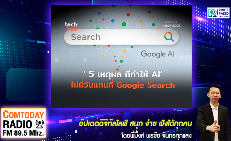 Comtoday l 5 เหตุผล ที่ทำให้ AI ไม่มีวันแทนที่ Google Search . ดำเนินรายการโดย พี่มิ้งค์ พรชัย จันทรศุภแสง . ออกอากาศ 27 มิถุนายน 2568 ติดตามรับฟังได้ทาง #วิทยุราชมงคลธัญบุรี #RmuttRadio #Comtoday #computer #เทคโนโลยี ...