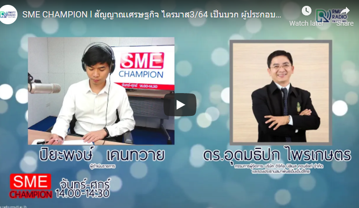 SME CHAMPION l สัญญาณเศรษฐกิจ ไตรมาส3/64 เป็นบวก ผู้ประกอบการเตรียมปรับแผนรับ ติดตามข่าวสารการส่งเสริม SME กับ ดร.อุดมธิปก ไพรเกษตร กรรมการผู้จัดการ บริษัท ดิจิทัลบิสิเนส คอนซัลท์ จำกัด และปิยะพงษ์ เคนทวาย [11 มีนาคม 2564] #SME_Champion, #วิทยุราชมงคลธัญบุรี, #SME, #เอสเอ็มอี, ...