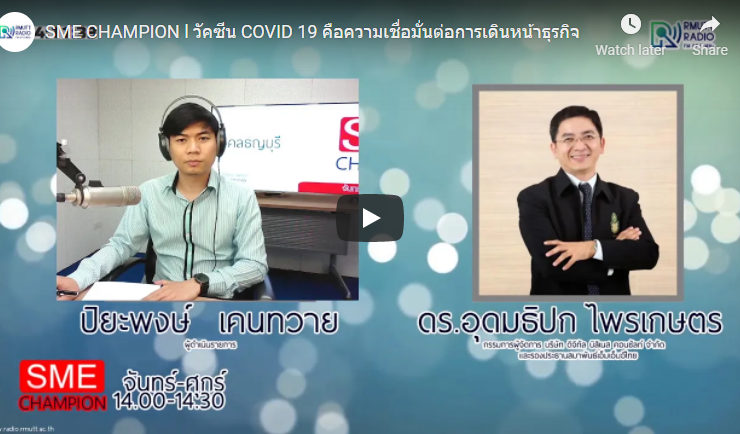 SME CHAMPION l วัคซีน COVID 19 คือความเชื่อมั่นต่อการเดินหน้าธุรกิจ ติดตามข่าวสารการส่งเสริม SME กับ ดร.อุดมธิปก ไพรเกษตร กรรมการผู้จัดการ บริษัท ดิจิทัลบิสิเนส คอนซัลท์ จำกัด และปิยะพงษ์ เคนทวาย [16 มีนาคม 2564] #SME_Champion, #วิทยุราชมงคลธัญบุรี, #SME, #เอสเอ็มอี, ...