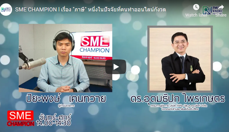 SME CHAMPION l เรื่อง “ภาษี” หนึ่งในปัจจัยที่คนทำออนไลน์กังวล ติดตามข่าวสารการส่งเสริม SME กับ ดร.อุดมธิปก ไพรเกษตร กรรมการผู้จัดการ บริษัท ดิจิทัลบิสิเนส คอนซัลท์ จำกัด และปิยะพงษ์ เคนทวาย [25 มกราคม 2564] #SME_Champion, #วิทยุราชมงคลธัญบุรี, #SME, #เอสเอ็มอี, ...