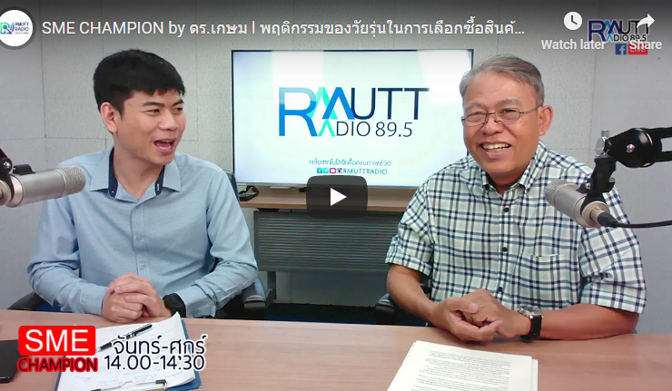 SME CHAMPION by ดร.เกษม l พฤติกรรมของวัยรุ่นในการเลือกซื้อสินค้าและบริการ ในช่วง SME TALK โดย ดร.เกษม พิพัฒน์เสรีธรรม กรรมการผู้จัดการบริษัท 40 เค แอนด์ พี จำกัด และที่ปรึกษามหาวิทยาลัยเทคโนโลยีราชมงคลธัญบุรี สนใจอ่านบทความทั้งหมดของ ดร.เกษม พิพัฒน์เสรีธรรม จากหนังสือ “ตังค์หาง่าย” ติดต่อได้ทกับทีมงานรายการ SME CHAMPION [28 มกราคม 2564] ดำเนินรายการโดย ปิยะพงษ์ เคนทวาย #SME_Champion, #วิทยุราชมงคลธัญบุรี, #SME, #เอสเอ็มอี, ...