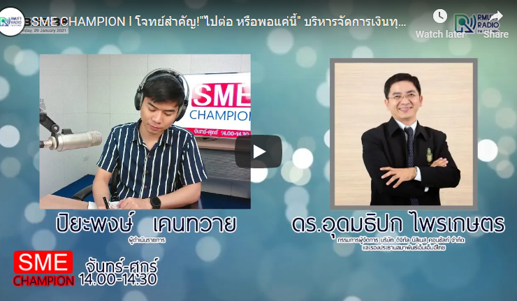SME CHAMPION l โจทย์สำคัญ!”ไปต่อ หรือพอแค่นี้” บริหารจัดการเงินทุนและหนี้ให้ต่อลมหายใจธุรกิจอย่างไร? ติดตามข่าวสารการส่งเสริม SME กับ ดร.อุดมธิปก ไพรเกษตร กรรมการผู้จัดการ บริษัท ดิจิทัลบิสิเนส คอนซัลท์ จำกัด และปิยะพงษ์ เคนทวาย . [29 มกราคม 2564] #SME_Champion, #วิทยุราชมงคลธัญบุรี, #SME, #เอสเอ็มอี, ...