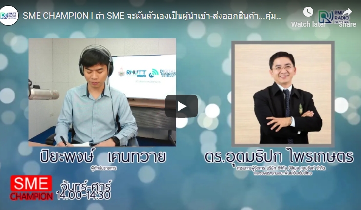 SME CHAMPION l ถ้า SME จะผันตัวเองเป็นผู้นำเข้า-ส่งออกสินค้า…คุ้มหรือเสี่ยง? ติดตามข่าวสารการส่งเสริม SME กับ ดร.อุดมธิปก ไพรเกษตร กรรมการผู้จัดการ บริษัท ดิจิทัลบิสิเนส คอนซัลท์ จำกัด และปิยะพงษ์ เคนทวาย [2 กุมภาพันธ์ 2564] #SME_Champion, #วิทยุราชมงคลธัญบุรี, #SME, #เอสเอ็มอี, ...