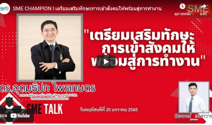 SME CHAMPION l เตรียมเสริมทักษะการเข้าสังคมให้พร้อมสู่การทำงาน ติดตามข่าวสารการส่งเสริม SME กับ ดร.อุดมธิปก ไพรเกษตร กรรมการผู้จัดการ บริษัท ดิจิทัลบิสิเนส คอนซัลท์ จำกัด และเลขาธิการสมาพันธ์เอสเอ็มอีไทย ดำเนินรายการโดย ปิยะพงษ์ เคนทวาย [20 มกราคม 2565] #SME_Champion, #วิทยุราชมงคลธัญบุรี, #SME, #เอสเอ็มอี, ...