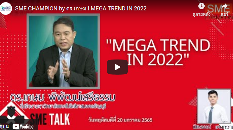 SME CHAMPION by ดร.เกษม l MEGA TREND IN 2022 ในช่วง SME TALK โดย ดร.เกษม พิพัฒน์เสรีธรรม กรรมการผู้จัดการบริษัท 40 เค แอนด์ พี จำกัด และที่ปรึกษามหาวิทยาลัยเทคโนโลยีราชมงคลธัญบุรี สนใจอ่านบทความทั้งหมดของ ดร.เกษม พิพัฒน์เสรีธรรม จากหนังสือ “ตังค์หาง่าย” ติดต่อได้ทกับทีมงานรายการ SME CHAMPION [20 มกราคม 2565] ดำเนินรายการโดย ปิยะพงษ์ เคนทวาย #SME_Champion, #วิทยุราชมงคลธัญบุรี, #SME, #เอสเอ็มอี, ...