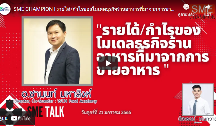 SME CHAMPION l รายได้/กำไรของโมเดลธุรกิจร้านอาหารที่มาจากการขายอาหาร ในช่วง SME TALK วันนี้คุยกับ อ.ชานนท์ มหาสิงห์ Director Co-Founder, WCN Food Academy เวลา 14.20-14.30 น. ติดตามบทวิเคราะห์จาก อ.ชานนท์ มหาสิงห์ ได้ทุกวันศุกร์ ทางวิทยุราชมงคลธัญบุรี ดำเนินรายการโดย และปิยะพงษ์ เคนทวาย [21 มกราคม 2565] #SME_Champion, #วิทยุราชมงคลธัญบุรี, #SME, #เอสเอ็มอี, ...