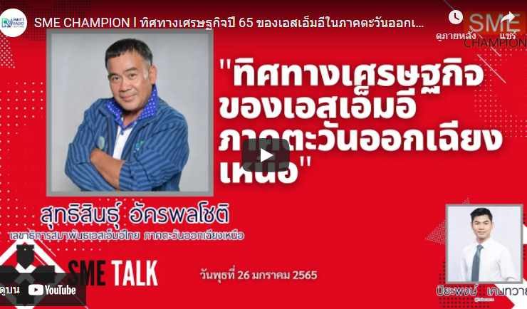 SME CHAMPION l ทิศทางเศรษฐกิจปี 65 ของเอสเอ็มอีในภาคตะวันออกเฉียงเหนือ . ช่วง SME TALK วันนี้คุยกับ คุณสุทธิสิทธุ์ อัครพลโชติ ประธานสมาพันธ์เอสเอ็มอีไทย ภาคตะวันออกเฉียงเหนือ . ดำเนินรายการโดย ปิยะพงษ์ เคนทวาย [26 มกราคม 2565] #SME_Champion, #วิทยุราชมงคลธัญบุรี, #SME, #เอสเอ็มอี, ...