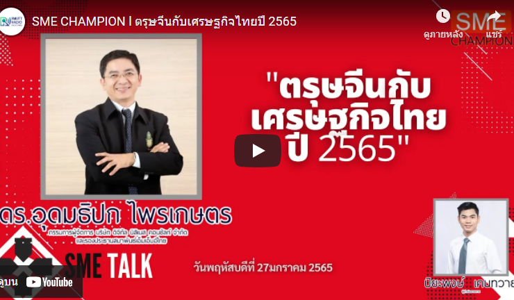 SME CHAMPION l ตรุษจีนกับเศรษฐกิจไทยปี 2565 ติดตามข่าวสารการส่งเสริม SME กับ ดร.อุดมธิปก ไพรเกษตร กรรมการผู้จัดการ บริษัท ดิจิทัลบิสิเนส คอนซัลท์ จำกัด และเลขาธิการสมาพันธ์เอสเอ็มอีไทย ดำเนินรายการโดย ปิยะพงษ์ เคนทวาย [27 มกราคม 2565] รับฟังย้อนหลังทาง : #SME_Champion, #วิทยุราชมงคลธัญบุรี, #SME, #เอสเอ็มอี, ...