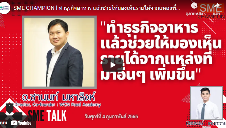 SME CHAMPION l ทำธุรกิจอาหาร แล้วช่วยให้มองเห็นรายได้จากแหล่งที่มาอื่นๆ เพิ่มขึ้น . ในช่วง SME TALK วันนี้คุยกับ อ.ชานนท์ มหาสิงห์ Director Co-Founder, WCN Food Academy . เวลา 14.20-14.30 น. ติดตามบทวิเคราะห์จาก อ.ชานนท์ มหาสิงห์ ได้ทุกวันศุกร์ ทางวิทยุราชมงคลธัญบุรี ดำเนินรายการโดย และปิยะพงษ์ เคนทวาย [4 กุมภาพันธ์ 2565] #SME_Champion, #วิทยุราชมงคลธัญบุรี, #SME, #เอสเอ็มอี, ...