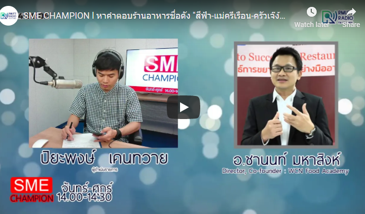 SME CHAMPION l หาคำตอบร้านอาหารชื่อดัง “สีฟ้า-แม่ครีเรือน-ครัวเจ๊ง้อ” ถึงประสบความสำเร็จรุ่นสู่รุ่น ในช่วง SME TALK วันนี้คุยกับ อ.ชานนท์ มหาสิงห์ Director Co-Founder, WCN Food Academy [15 มกราคม 2564] เวลา 14.20-14.30 น. ติดตามบทวิเคราะห์จาก อ.ชานนท์ มหาสิงห์ ได้ทุกวันศุกร์ ทางวิทยุราชมงคลธัญบุรี ดำเนินรายการโดย และปิยะพงษ์ เคนทวาย ...