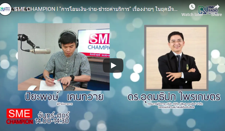 SME CHAMPION l “การโอนเงิน-จ่าย-ชำระค่าบริการ” เรื่องง่ายๆ ในยุคปัจจุบัน ติดตามข่าวสารการส่งเสริม SME กับ ดร.อุดมธิปก ไพรเกษตร กรรมการผู้จัดการ บริษัท ดิจิทัลบิสิเนส คอนซัลท์ จำกัด และปิยะพงษ์ เคนทวาย [15 มกราคม 2564] #SME_Champion, #วิทยุราชมงคลธัญบุรี, #SME, #เอสเอ็มอี, ...