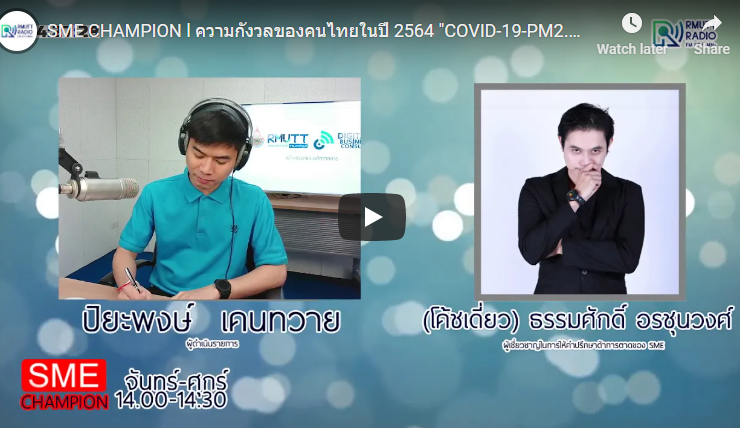 SME CHAMPION l ความกังวลของคนไทยในปี 2564 “COVID-19-PM2.5-ความแตกต่างทางสังคม”…จะสร้างความสุข? ช่วง SME TALK พูดคุยกับ โค้ชเดี่ยว คุณธรรมศักดิ์ อรชุนวงศ์ (ผู้เชี่ยวชาญในการให้คำปรึกษาด้านการตลาดและการสร้างแบนด์) ติดตามข่าวสารการส่งเสริม SME กับ ดร.อุดมธิปก ไพรเกษตร กรรมการผู้จัดการ บริษัท ดิจิทัลบิสิเนส คอนซัลท์ จำกัด และปิยะพงษ์ เคนทวาย . [19 มกราคม 2564] #SME_Champion, #วิทยุราชมงคลธัญบุรี, #SME, #เอสเอ็มอี, ...