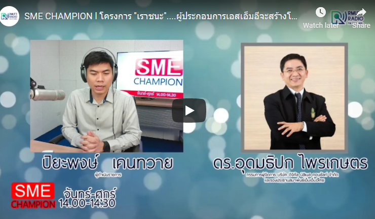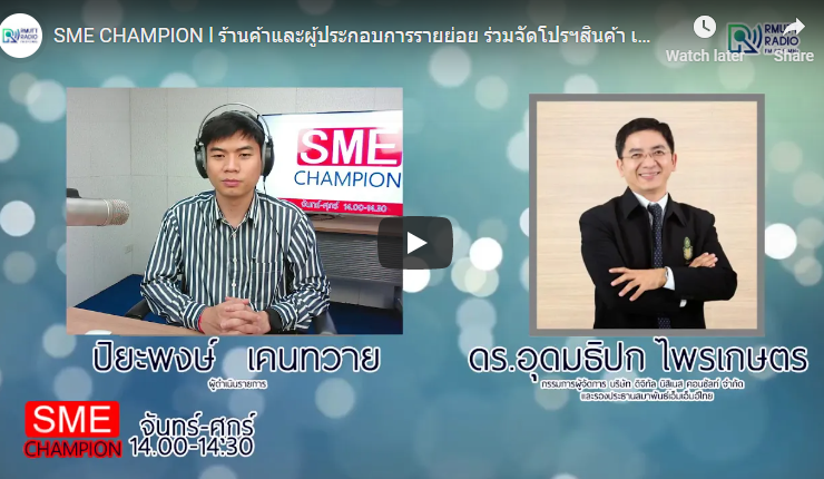 SME CHAMPION l โครงการ “เราชนะ”….ผู้ประกอบการเอสเอ็มอีจะสร้างโอกาสในการขายสินค้าอย่างไร? ติดตามข่าวสารการส่งเสริม SME กับ ดร.อุดมธิปก ไพรเกษตร กรรมการผู้จัดการ บริษัท ดิจิทัลบิสิเนส คอนซัลท์ จำกัด และปิยะพงษ์ เคนทวาย . [20 มกราคม 2564] #SME_Champion, #วิทยุราชมงคลธัญบุรี, #SME, #เอสเอ็มอี, ...