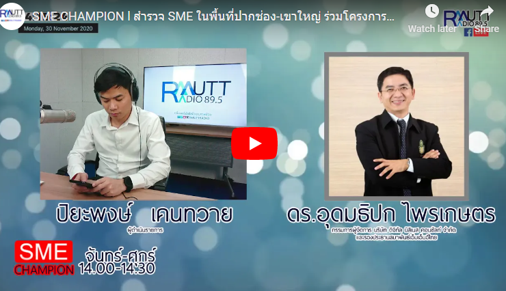 SME CHAMPION l สำรวจ SME ในพื้นที่ปากช่อง-เขาใหญ่ ร่วมโครงการคนละครึ่ง ติดตามข่าวสารการส่งเสริม SME กับ ดร.อุดมธิปก ไพรเกษตร กรรมการผู้จัดการ บริษัท ดิจิทัลบิสิเนส คอนซัลท์ จำกัด และปิยะพงษ์ เคนทวาย ออกอากาศทุกวันจันทร์-ศุกร์ เวลา 14.00-14.30 น. . [30 พฤศจิกายน 2563] #SME_Champion, #วิทยุราชมงคลธัญบุรี, #SME, #เอสเอ็มอี, ...