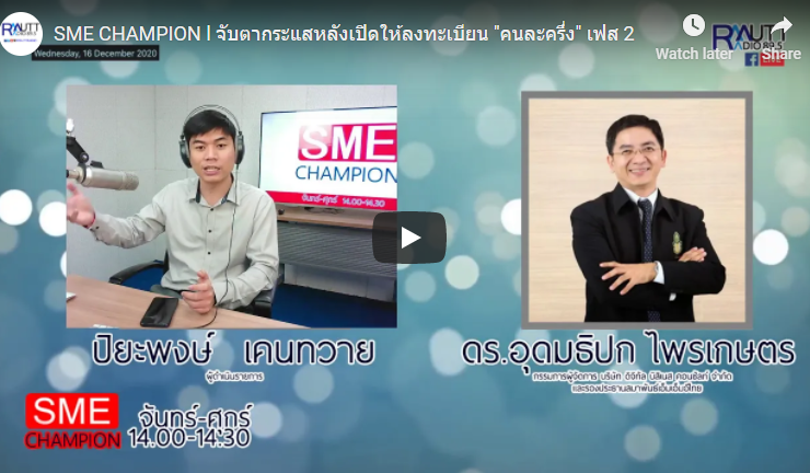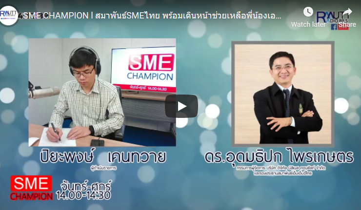 SME CHAMPION l สมาพันธ์SMEไทย พร้อมเดินหน้าช่วยเหลือพี่น้องเอสเอ็มอี ติดตามข่าวสารการส่งเสริม SME กับ ดร.อุดมธิปก ไพรเกษตร กรรมการผู้จัดการ บริษัท ดิจิทัลบิสิเนส คอนซัลท์ จำกัด และปิยะพงษ์ เคนทวาย ออกอากาศทุกวันจันทร์-ศุกร์ เวลา 14.00-14.30 น. . [5 ธันวาคม 2563] #SME_Champion, #วิทยุราชมงคลธัญบุรี, #SME, #เอสเอ็มอี, ...