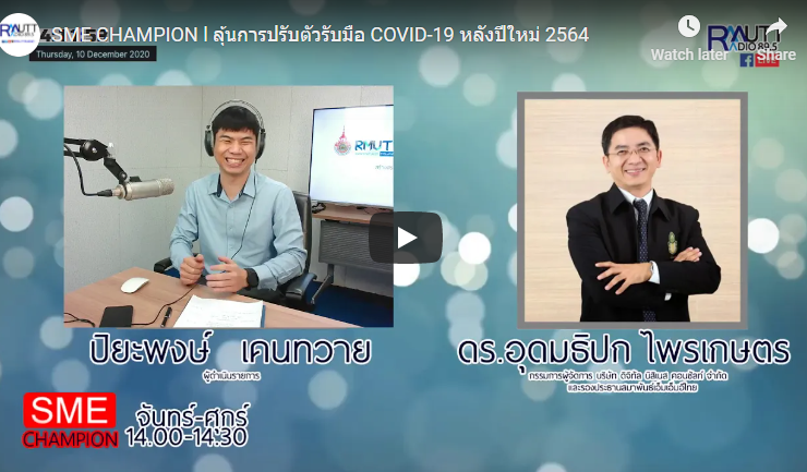 SME CHAMPION l ลุ้นการปรับตัวรับมือ COVID-19 หลังปีใหม่ 2564 ติดตามข่าวสารการส่งเสริม SME กับ ดร.อุดมธิปก ไพรเกษตร กรรมการผู้จัดการ บริษัท ดิจิทัลบิสิเนส คอนซัลท์ จำกัด และปิยะพงษ์ เคนทวาย ออกอากาศทุกวันจันทร์-ศุกร์ เวลา 14.00-14.30 น. . [10 ธันวาคม 2563] #SME_Champion, #วิทยุราชมงคลธัญบุรี, #SME, #เอสเอ็มอี, ...