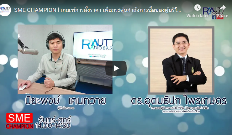 SME CHAMPION l เกณฑ์การตั้งราคา เพื่อกระตุ้นกำลังการซื้อของผู้บริโภค ติดตามข่าวสารการส่งเสริม SME กับ ดร.อุดมธิปก ไพรเกษตร กรรมการผู้จัดการ บริษัท ดิจิทัลบิสิเนส คอนซัลท์ จำกัด และปิยะพงษ์ เคนทวาย ออกอากาศทุกวันจันทร์-ศุกร์ เวลา 14.00-14.30 น. . [17 ธันวาคม 2563] #SME_Champion, #วิทยุราชมงคลธัญบุรี, #SME, #เอสเอ็มอี, ...