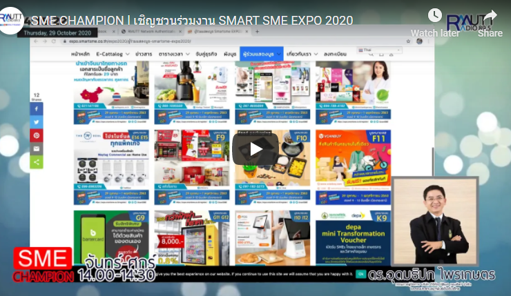 SME CHAMPION l เชิญชวนร่วมงาน SMART SME EXPO 2020 ระหว่าง 29 ต.ค.-1 พ.ย. 63 : ฮอลล์ 9-10 อิมแพ็ค เมืองทองธานี . ติดตามข่าวสารการส่งเสริม SME กับ ดร.อุดมธิปก ไพรเกษตร กรรมการผู้จัดการ บริษัท ดิจิทัลบิสิเนส คอนซัลท์ จำกัด และปิยะพงษ์ เคนทวาย ออกอากาศทุกวันจันทร์-ศุกร์ เวลา 14.00-14.30 น. . [29 ตุลาคม 2563] #SME_Champion, ...