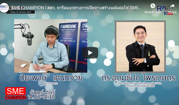 SME CHAMPION l สสว. หารือแนวทางการเปิดทางสร้างแต้มต่อให้ SME เข้าสู่การจัดซื้อจัดจ้างภาครัฐ ติดตามข่าวสารการส่งเสริม SME กับ ดร.อุดมธิปก ไพรเกษตร กรรมการผู้จัดการ บริษัท ดิจิทัลบิสิเนส คอนซัลท์ จำกัด และปิยะพงษ์ เคนทวาย ออกอากาศทุกวันจันทร์-ศุกร์ เวลา 14.00-14.30 น. . [30 ตุลาคม 2563] #SME_Champion, #วิทยุราชมงคลธัญบุรี, #SME, #เอสเอ็มอี, ...