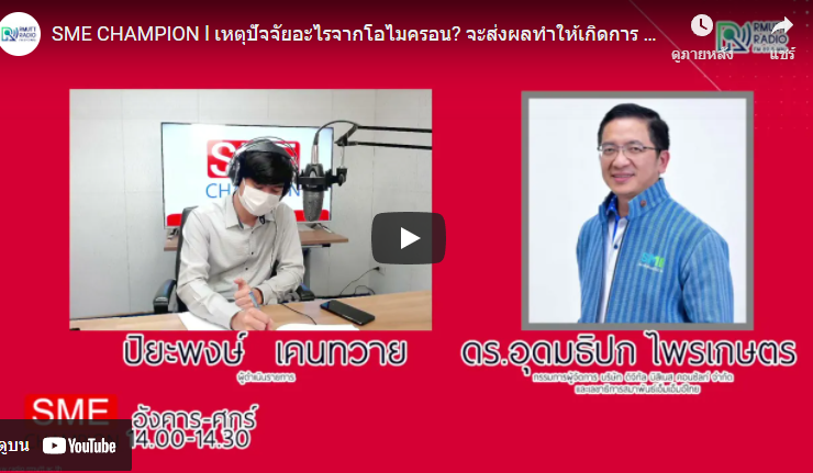 SME CHAMPION l เหตุปัจจัยอะไร? จะส่งผลทำให้เกิดการ Lockdown ธุรกิจอีกครั้งจากการระบาดสายพันธุ์โอไมครอน ติดตามข่าวสารการส่งเสริม SME กับ ดร.อุดมธิปก ไพรเกษตร กรรมการผู้จัดการ บริษัท ดิจิทัลบิสิเนส คอนซัลท์ จำกัด และเลขาธิการสมาพันธ์เอสเอ็มอีไทย ดำเนินรายการโดย ปิยะพงษ์ เคนทวาย [12 มกราคม 2565] รับฟังย้อนหลังทาง : #SME_Champion, #วิทยุราชมงคลธัญบุรี, #SME, #เอสเอ็มอี, ...